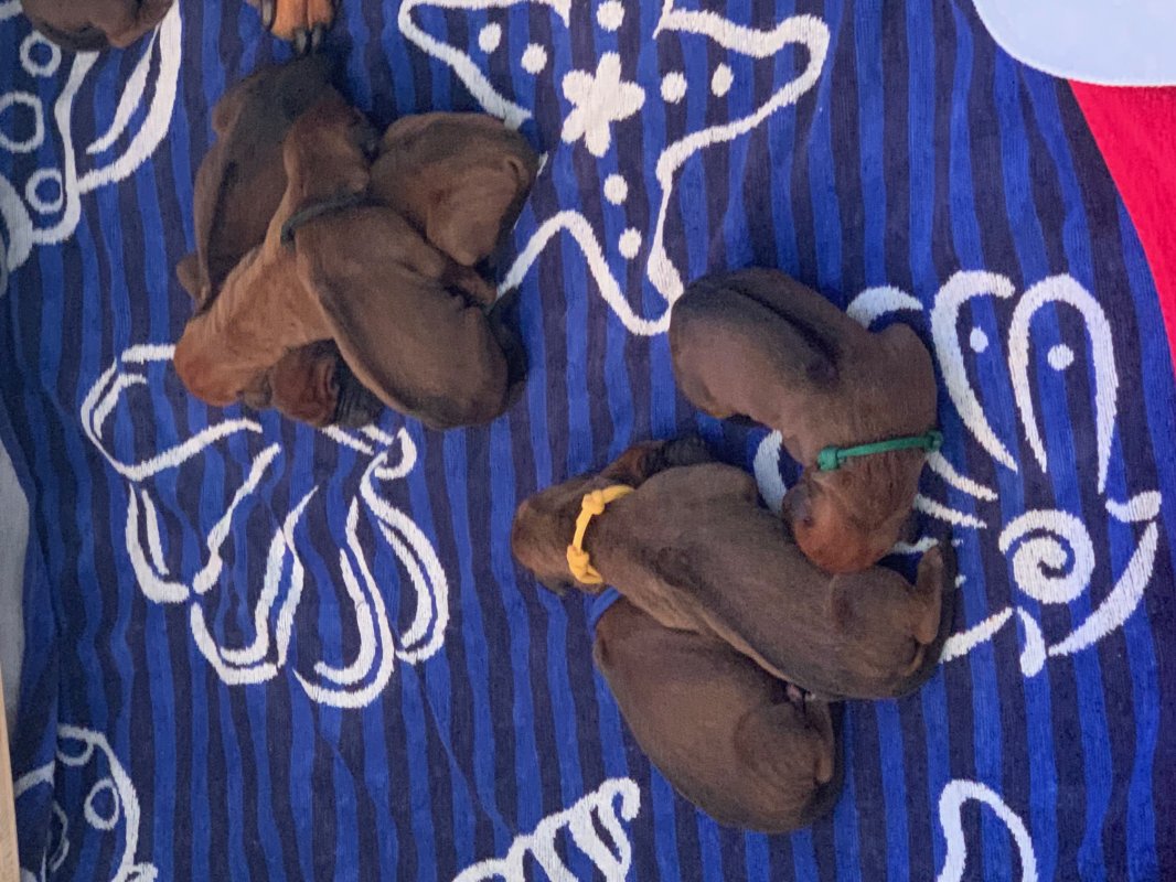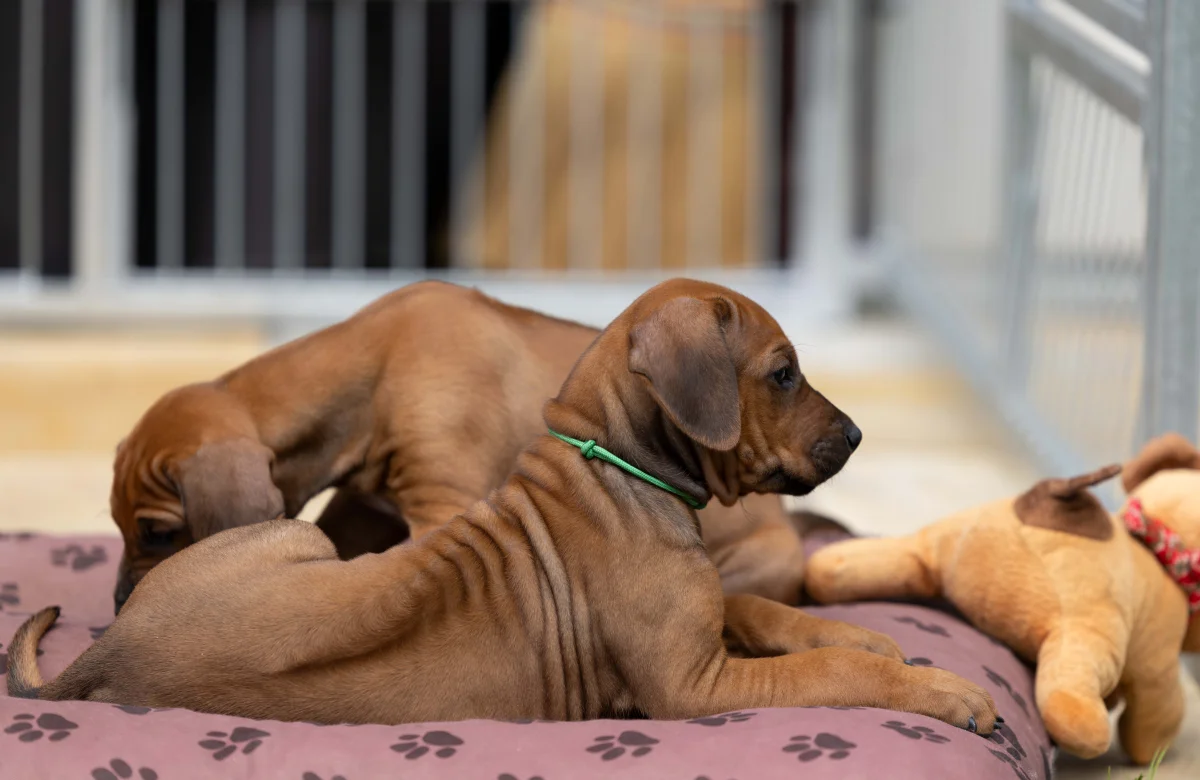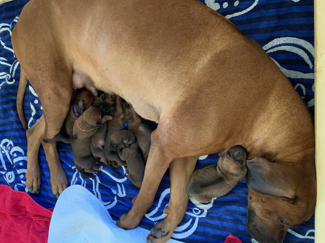 In der Nacht vom 02. zum 03. März 2025 haben uns Lion Sands Bintou "Jupp" und unsere geliebte Prinzessin Auksinis Feniksas Delight Ko "Maisha" ein ganz besonderes Geschenk gemacht. Maisha brachte 7 entzückende Welpen zur Welt, 2 Hündinnen und 5 Rüden. Diese kleinen Fellnasen sind ein Anfang voller Freude, Abenteuer und unvergesslicher Momente.