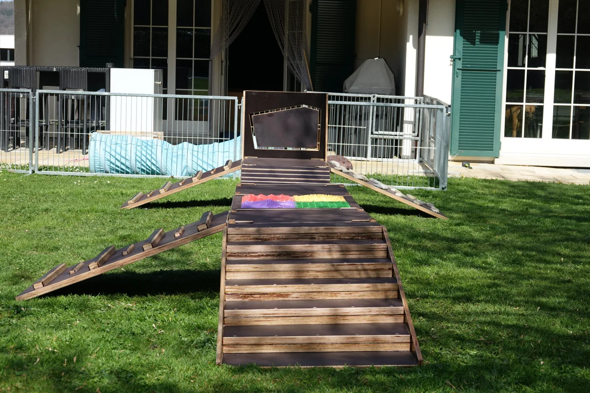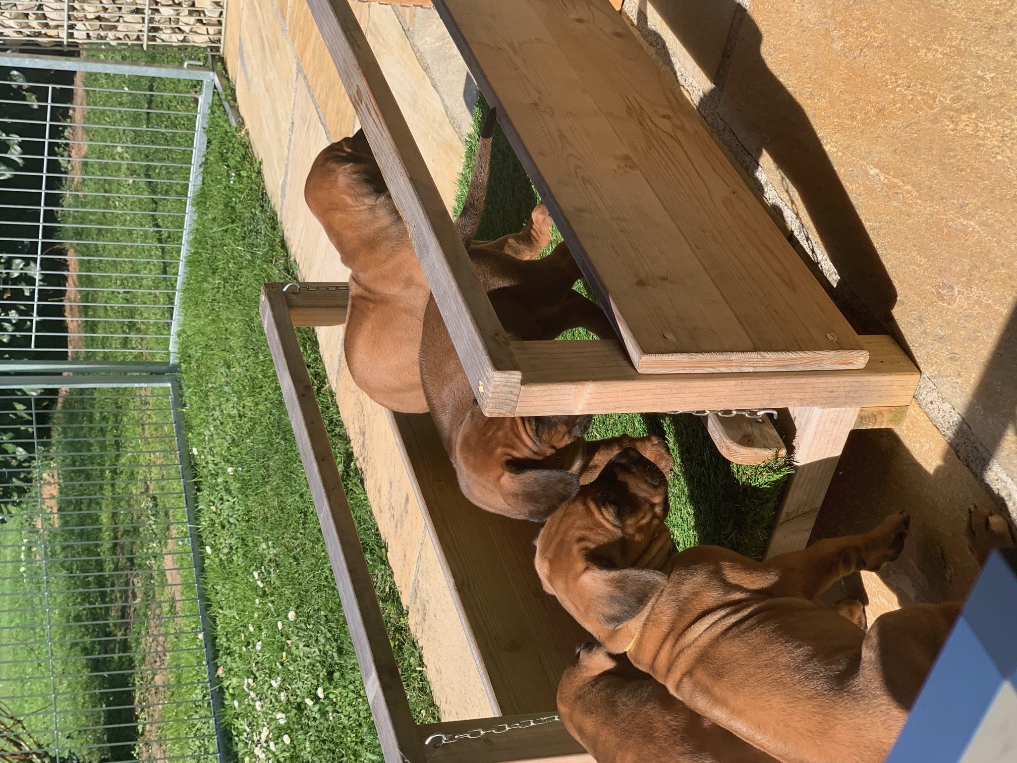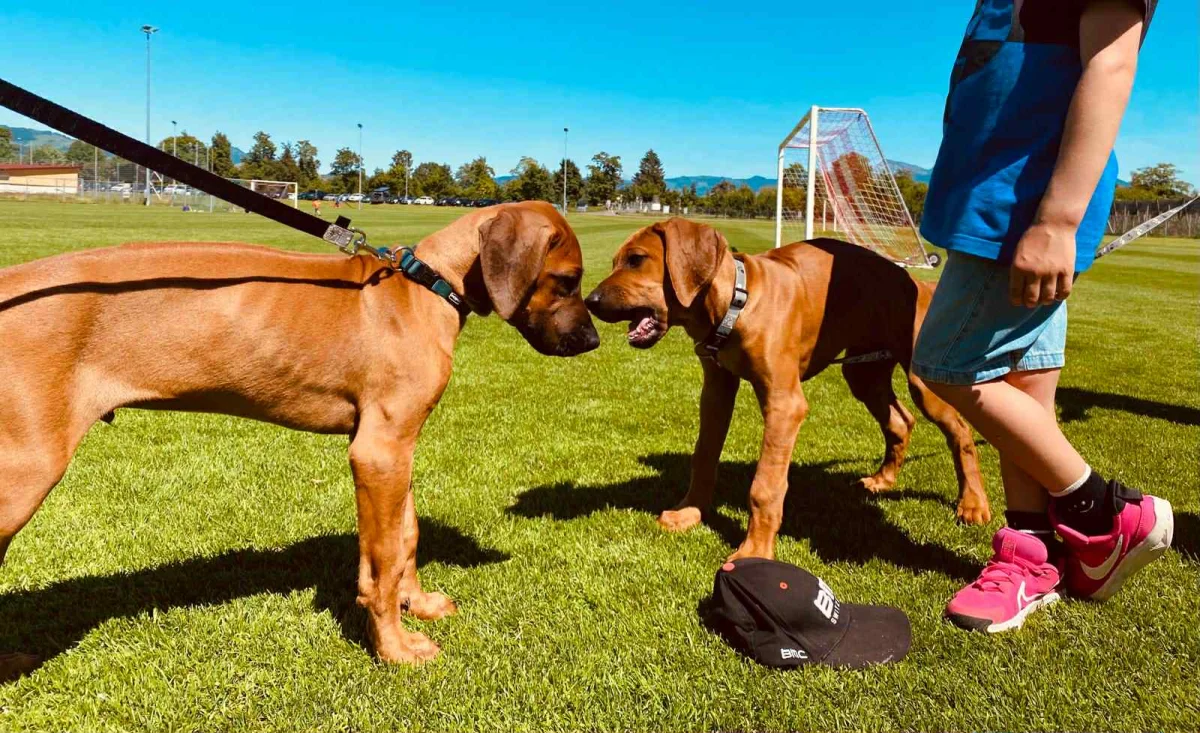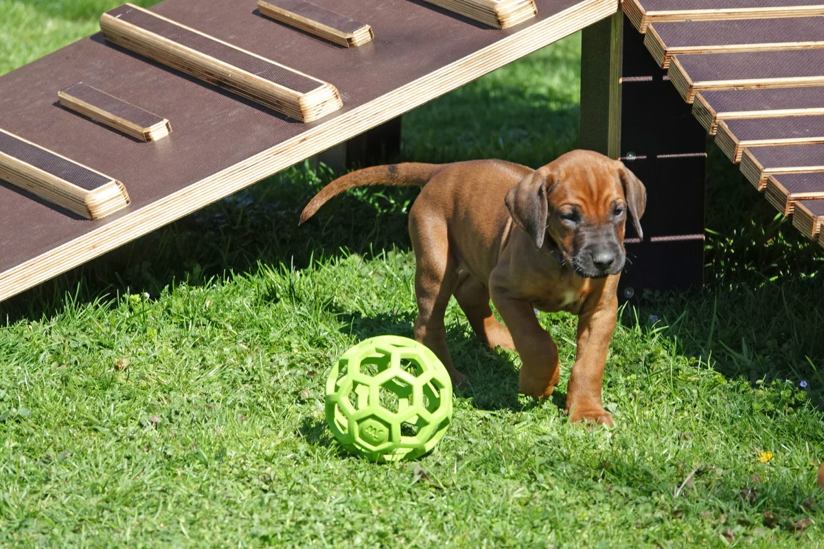 Die ersten Schritte in den Welpengarten bei schönem aber windigem Wetter