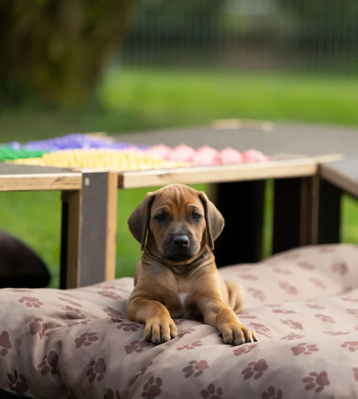 Am 02. März 2025 erblickte unser B-Wurf das Licht der Welt. Wir haben uns entschieden, eine Hündin aus diesem Wurf zu behalten. Alita Blue, wie wir sie genannt haben, ist eine sehr aktive und lebhafte Hündin, die es aber auch liebt, zu kuscheln und Zeit mit uns zu verbringen.