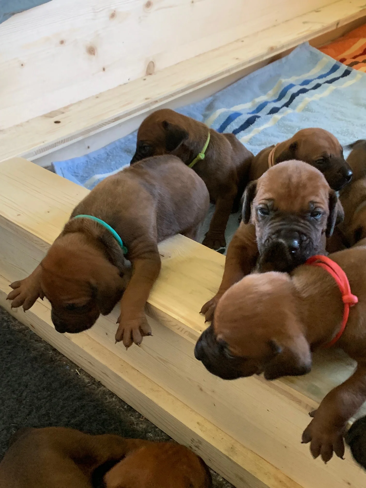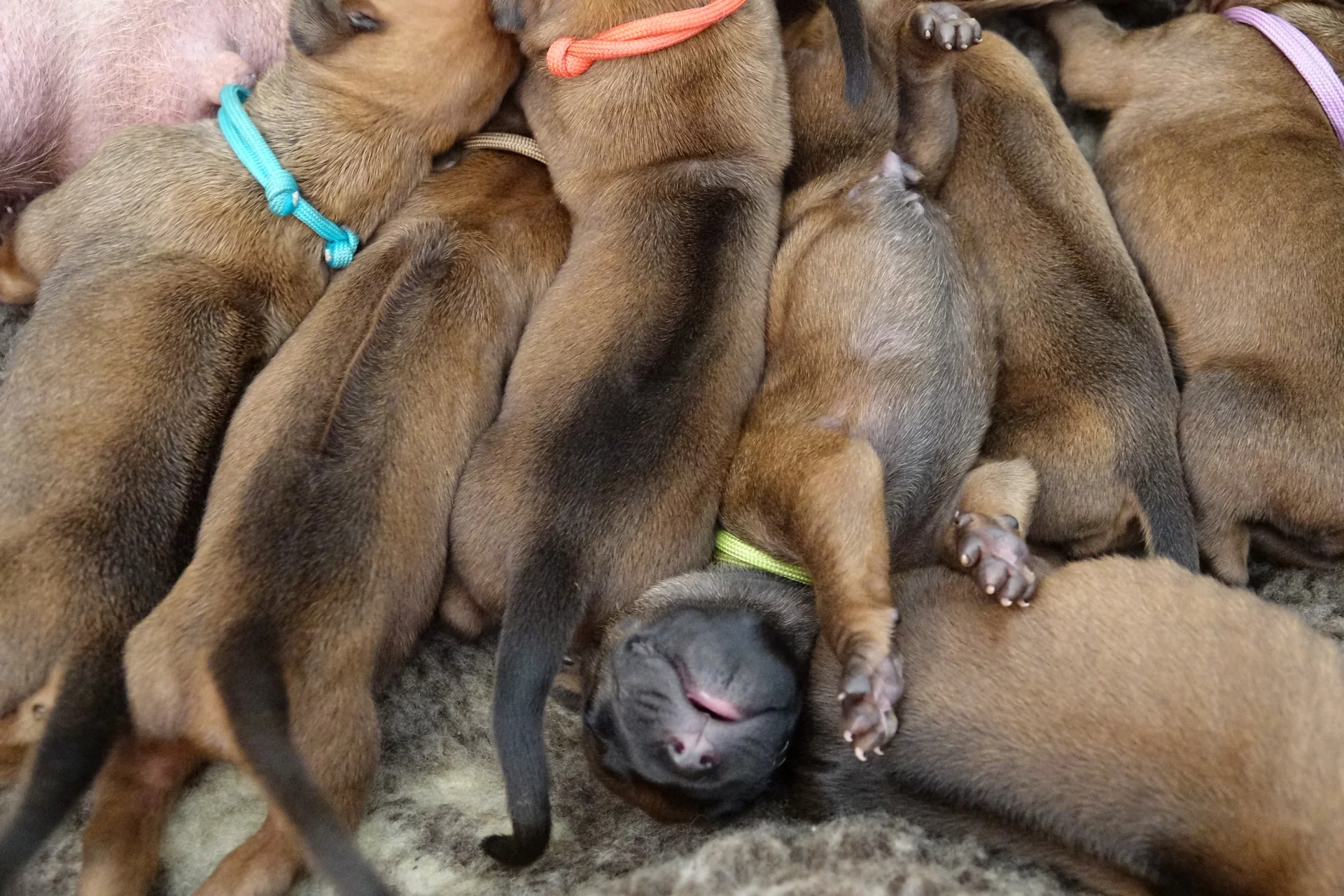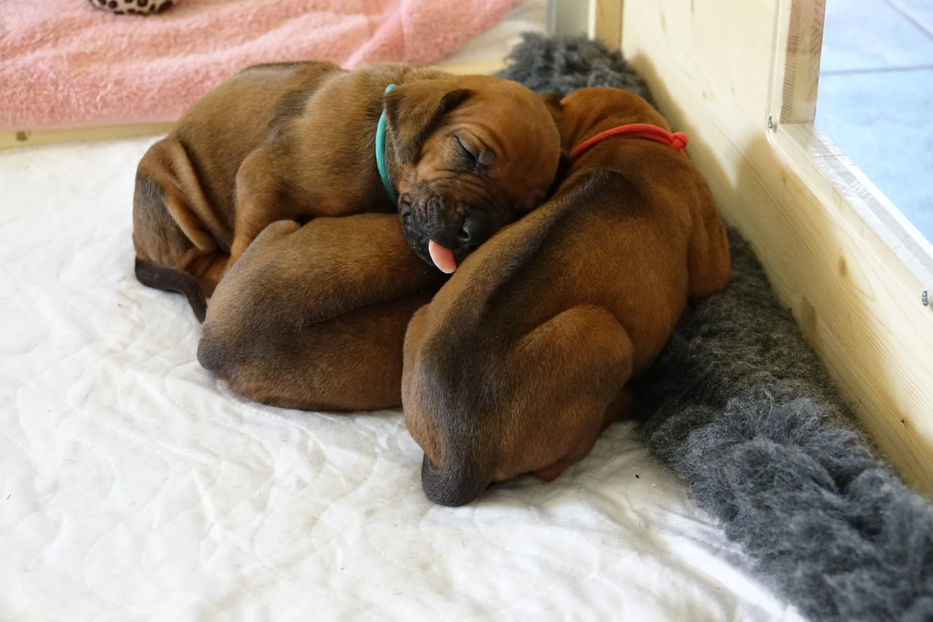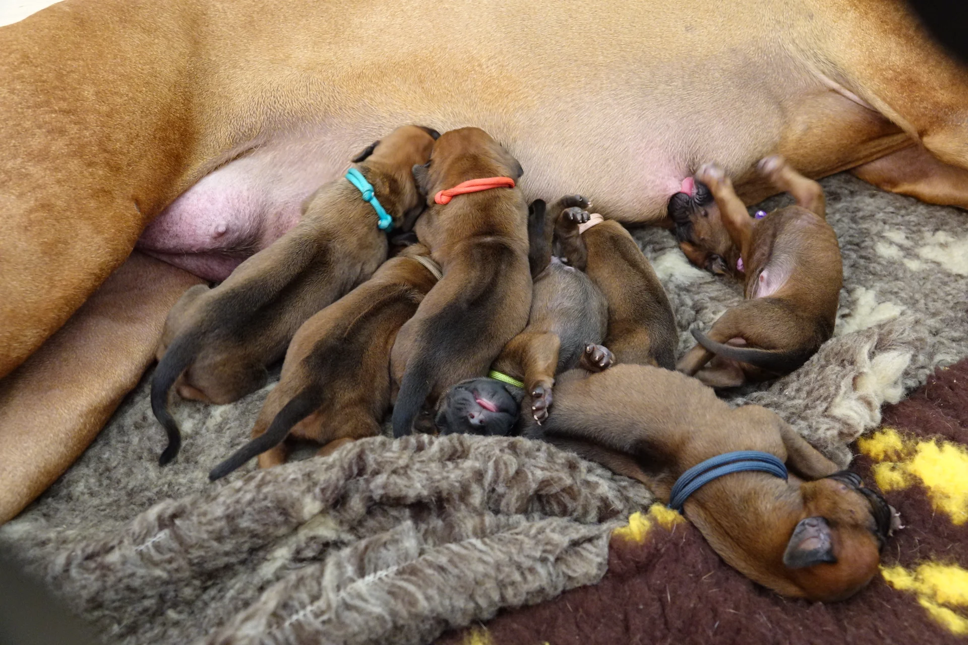 Am 08. Juni 2023 ging es mit unserem ersten Wurf Maniema Aziz (kostbar) los. Um 15:30 kam der erste Welpe auf die Welt. Der vermeintlich Letzter um 23:00 Uhr. Der Ultraschall wie auch das Röntgenbild zeigte 9 Welpen. Doch welche Überraschung; um 23:44 Uhr purzelte der zehnte Welpe in meine Hand. 5 Rüden und 5 Hündinnen hat uns Maisha geschenkt. Obwohl es ihr erster Wurf ist pflegt und hegt Maisha die Welpen vorbildlich. Am ersten Tag durfte sogar Papa Kipanga die Welpen kurz besuchen. Wir sind gespannt wie sich die Kleinen entwickeln werden.