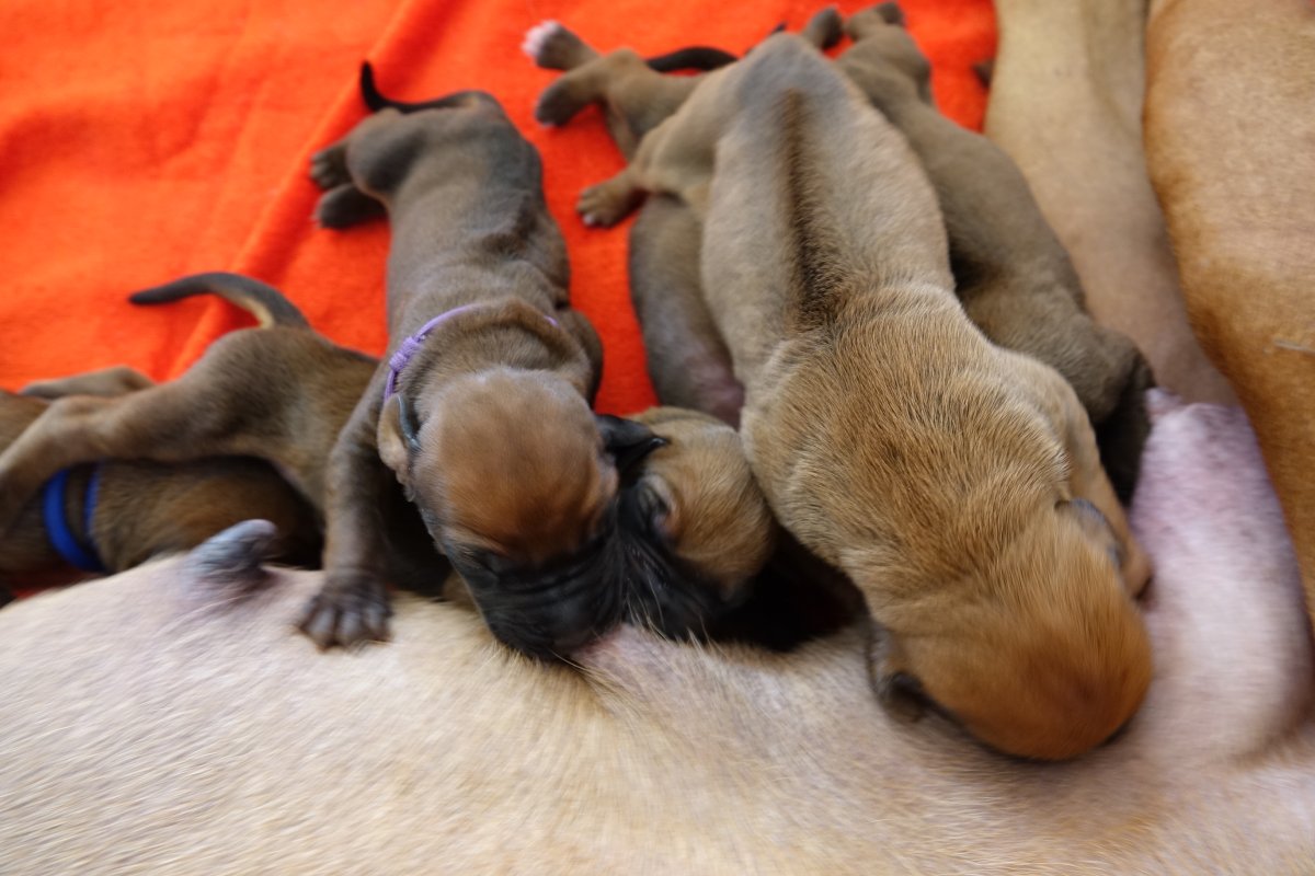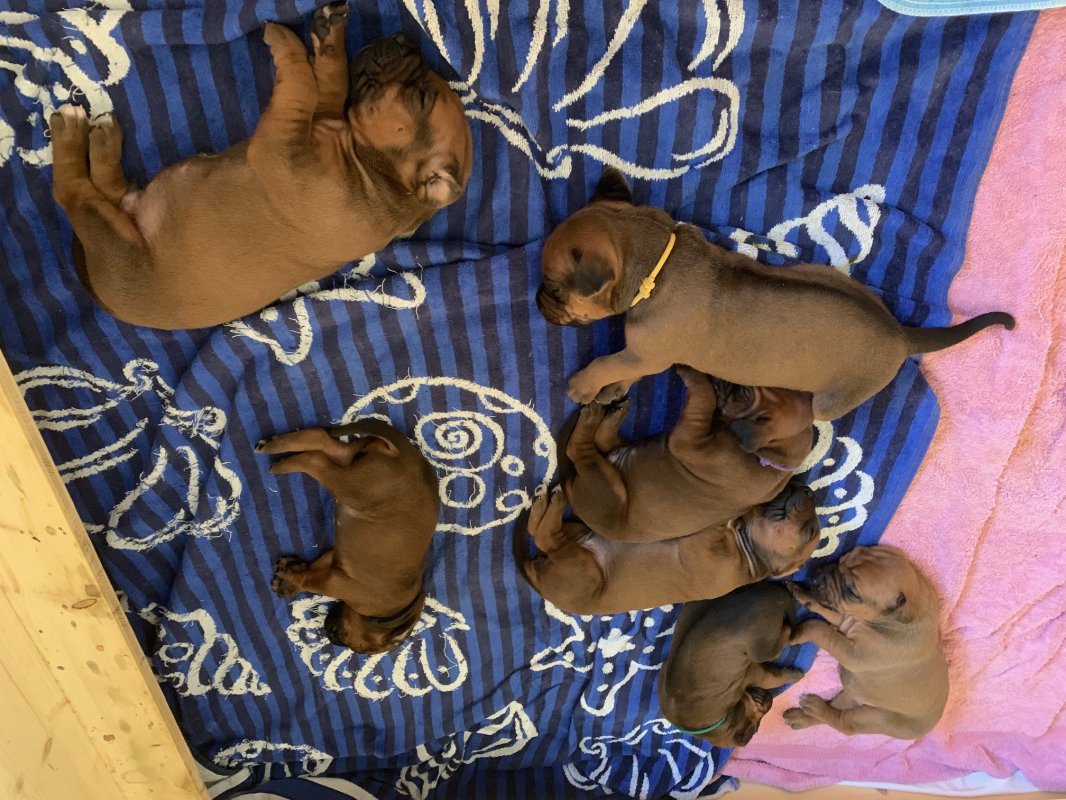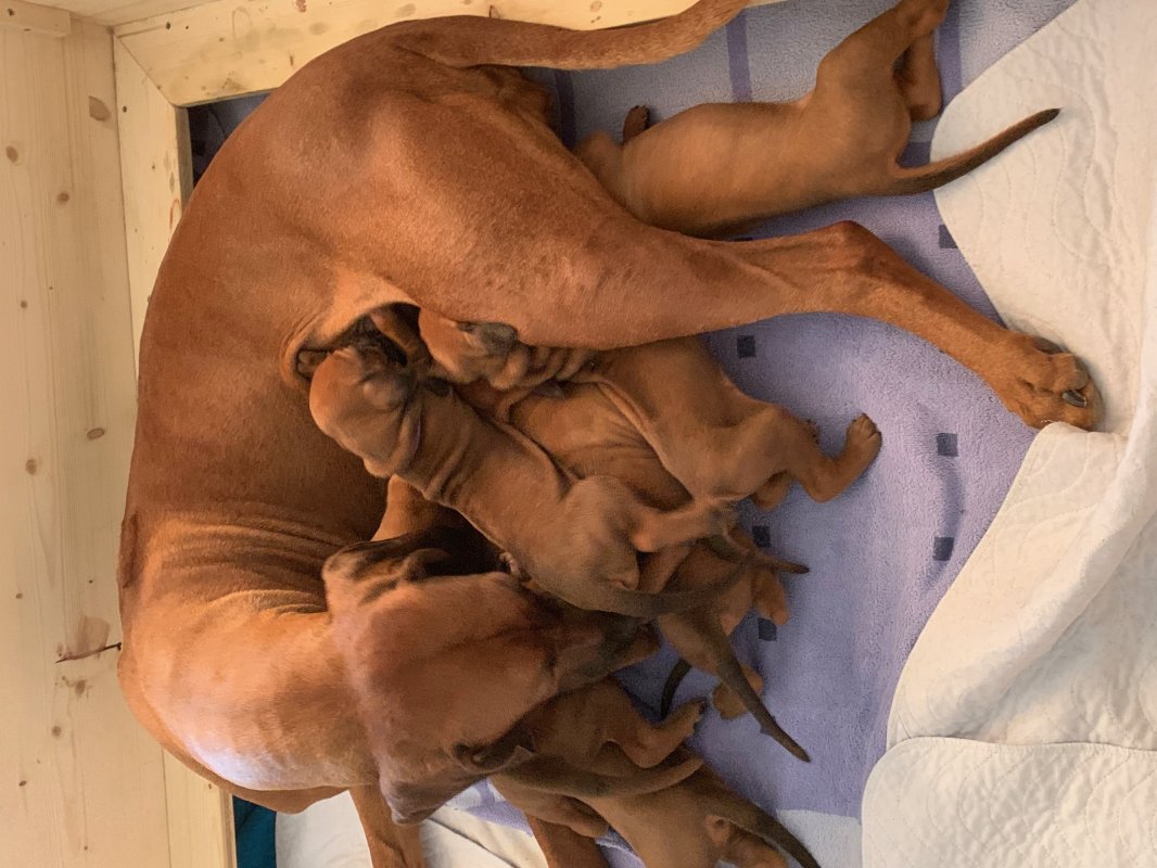 In der Nacht vom 02. zum 03. März 2025 haben uns Lion Sands Bintou "Jupp" und unsere geliebte Prinzessin Auksinis Feniksas Delight Ko "Maisha" ein ganz besonderes Geschenk gemacht. Maisha brachte 7 entzückende Welpen zur Welt, 2 Hündinnen und 5 Rüden. Diese kleinen Fellnasen sind ein Anfang voller Freude, Abenteuer und unvergesslicher Momente.