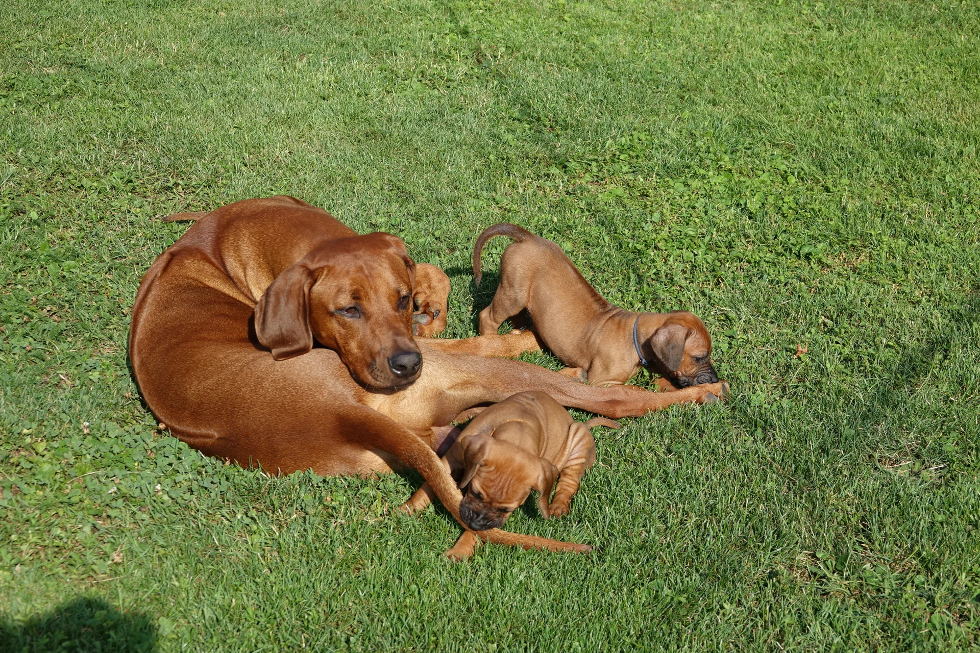 geduldige und sehr sanfte "Nanny" die Welpen mitbetreut hat.