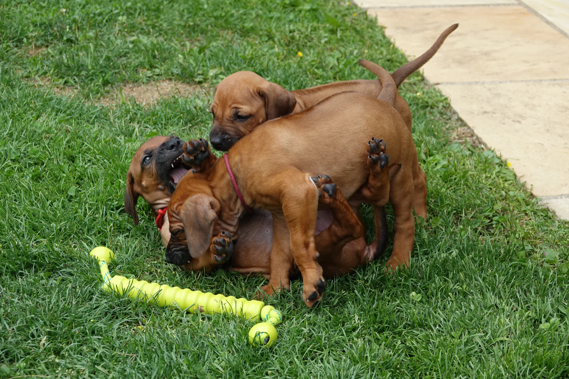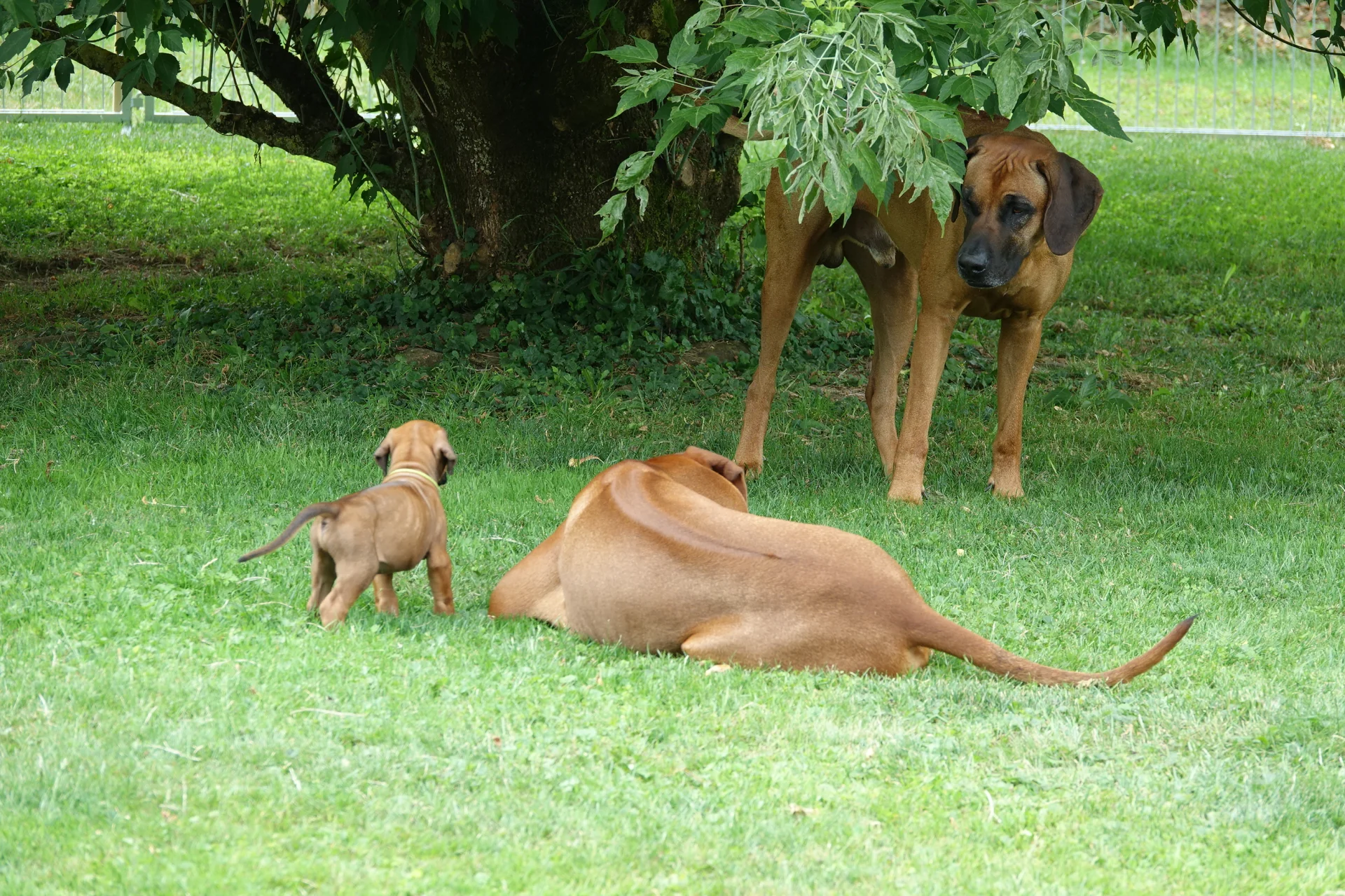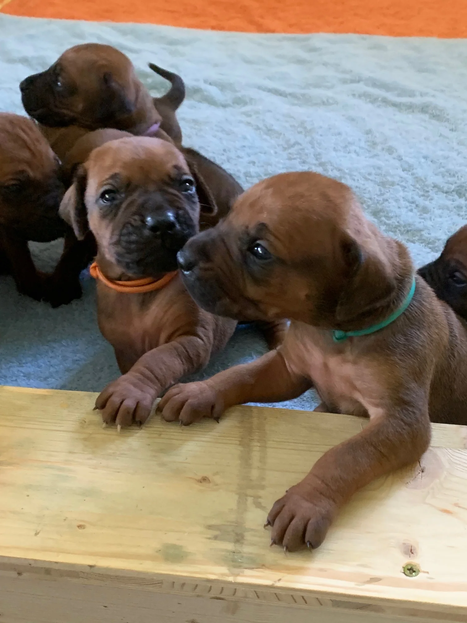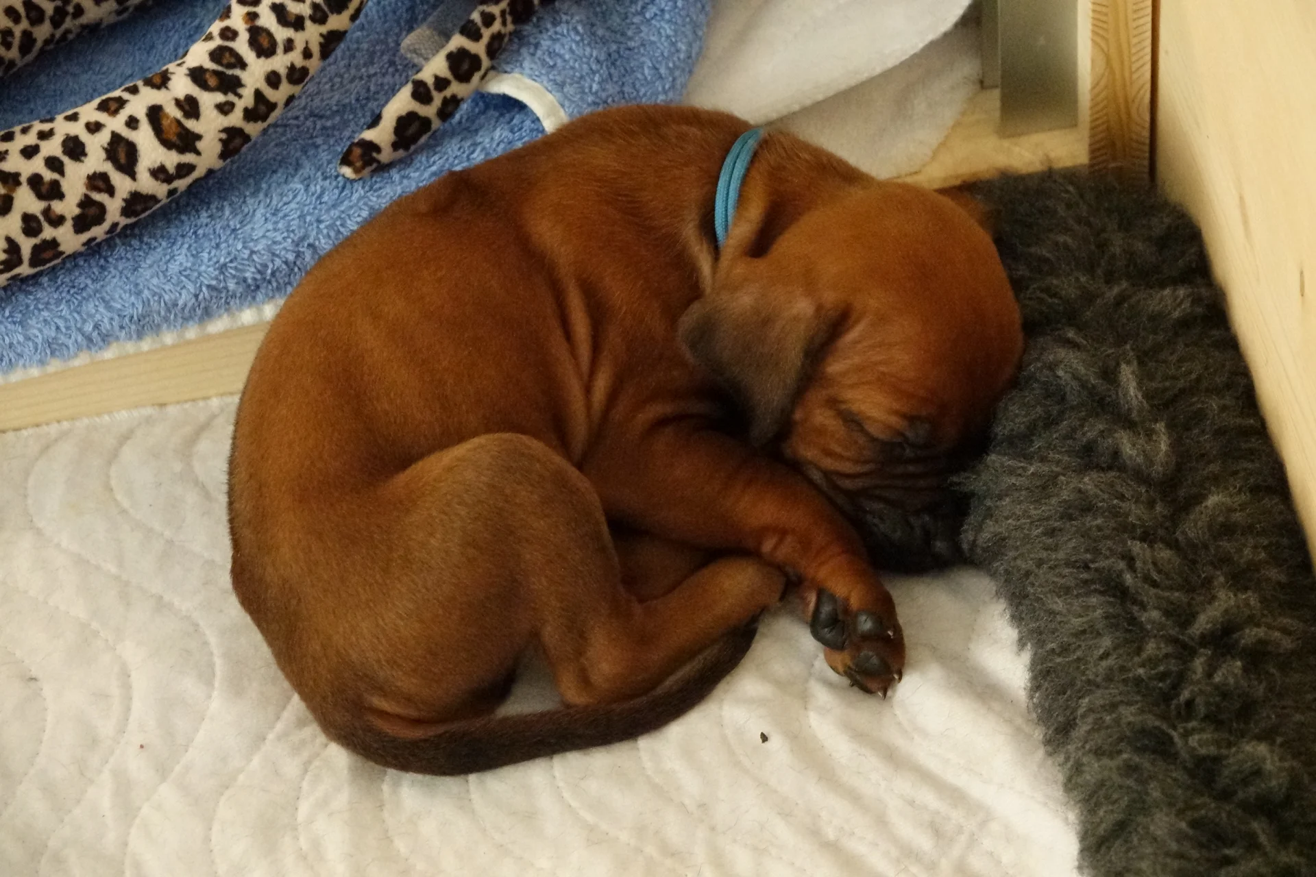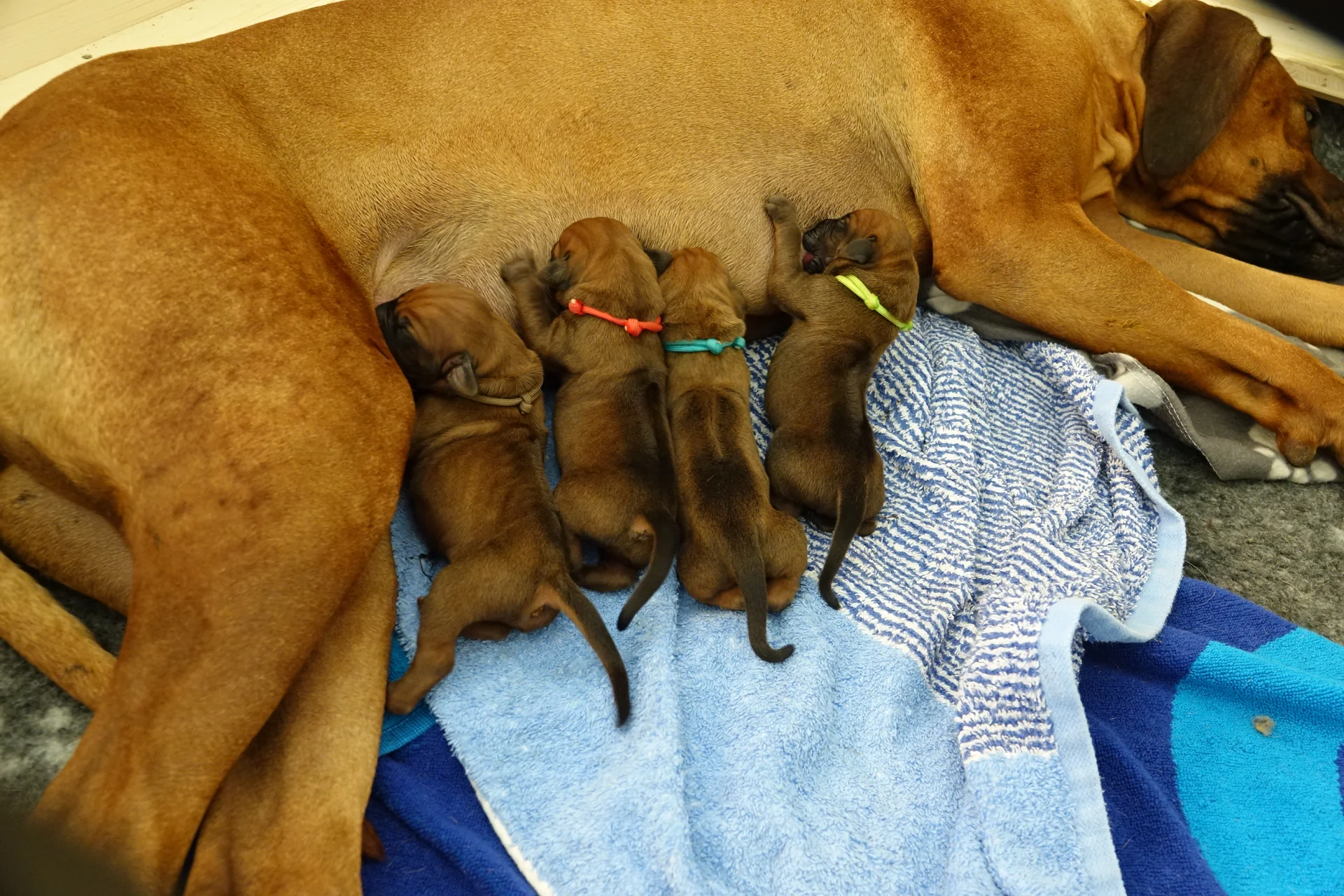 Am 08. Juni 2023 ging es mit unserem ersten Wurf Maniema Aziz (kostbar) los. Um 15:30 kam der erste Welpe auf die Welt. Der vermeintlich Letzter um 23:00 Uhr. Der Ultraschall wie auch das Röntgenbild zeigte 9 Welpen. Doch welche Überraschung; um 23:44 Uhr purzelte der zehnte Welpe in meine Hand. 5 Rüden und 5 Hündinnen hat uns Maisha geschenkt. Obwohl es ihr erster Wurf ist pflegt und hegt Maisha die Welpen vorbildlich. Am ersten Tag durfte sogar Papa Kipanga die Welpen kurz besuchen. Wir sind gespannt wie sich die Kleinen entwickeln werden.