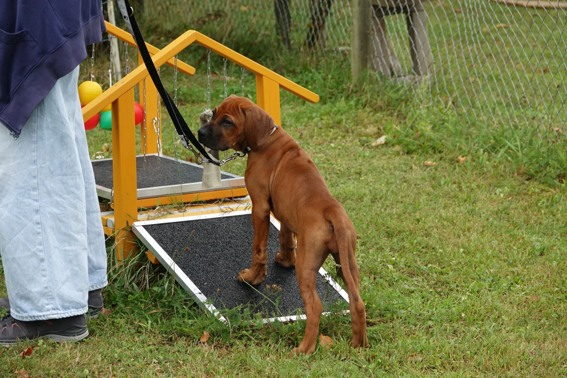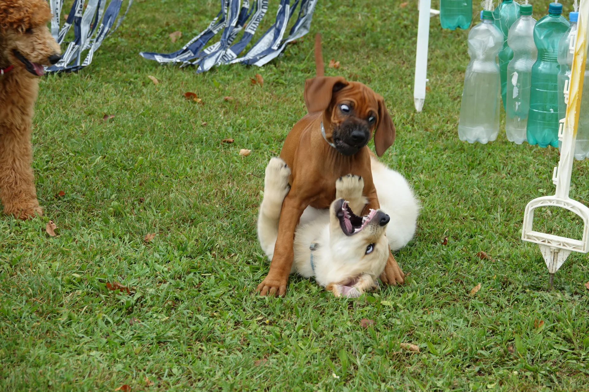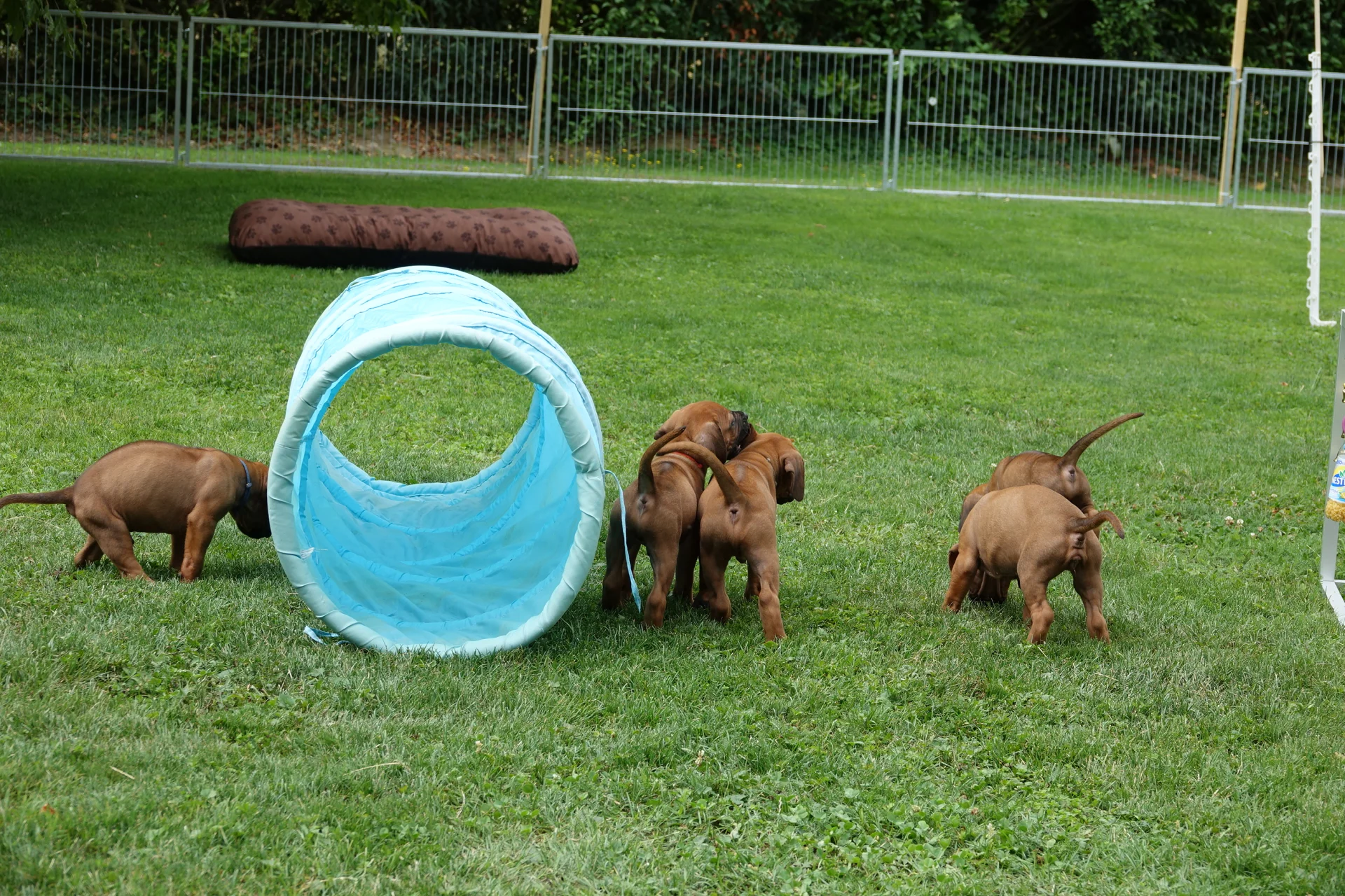 Mit den bei uns noch verbliebenen Welpen haben wir ab der 8ten Lebenswoche die Welpenschule besucht.